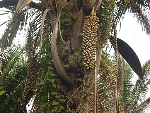 A planta tem frutos drupáceos com sementes oleaginosas e comestíveis das quais se extrai um óleo (rico em ácidos láuricos) empregado na alimentação, em remédios, biocombustíveis na fabricação de sabão e preparações cosméticas (óleo para o corpo e cabelo, cremes e sabonetes).